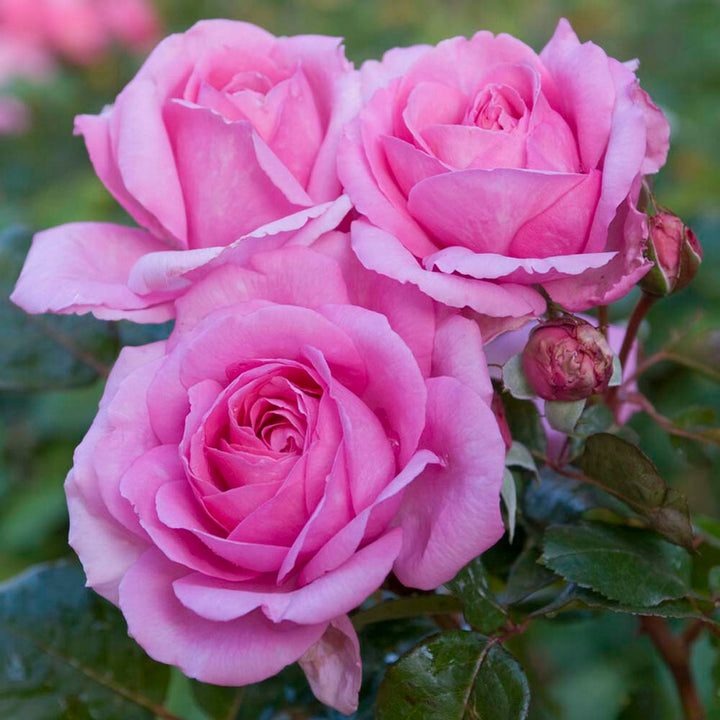 - Beautiful medium to deep pink, large hybrid tea roses with a hint of lilac, on a sturdy plant with a lovely fragrance and glossy foliage