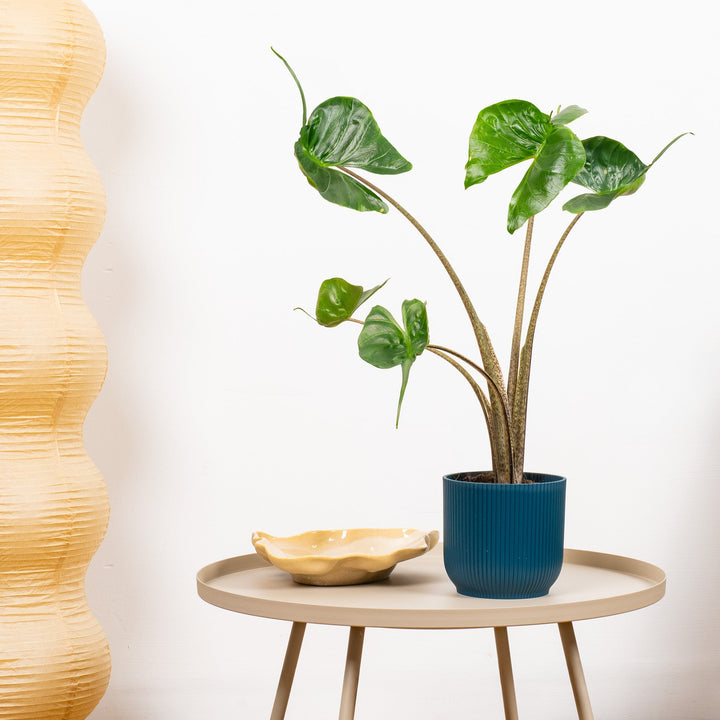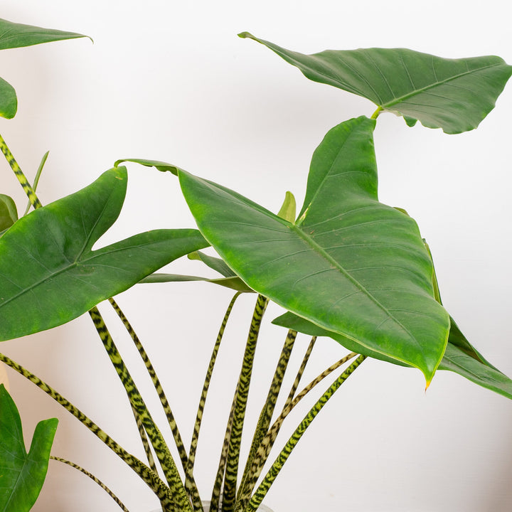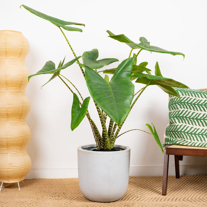 Alocasia Macrorrhiza Stingray, commonly known as an Elephant Ear Plant, is an indoor evergreen plant that is fairly rare due to it's unique leaves. It is appropriately named after stingrays, as the plants leaves resembles the body of one and the deep green colour of the leaves goes well with the pattern and the colour of the stems. The Prayer Plant will add benefits to the surrounding area with the use of its air-purifying qualities. They will remove harmful pollutants and unwanted toxins from the air, ensuring a clean and fresh atmosphere. The plant should be placed in a well lit room, in indirect light with regular watering so the soil does not go dry. The soil should be lightly moist for the plant to grow.