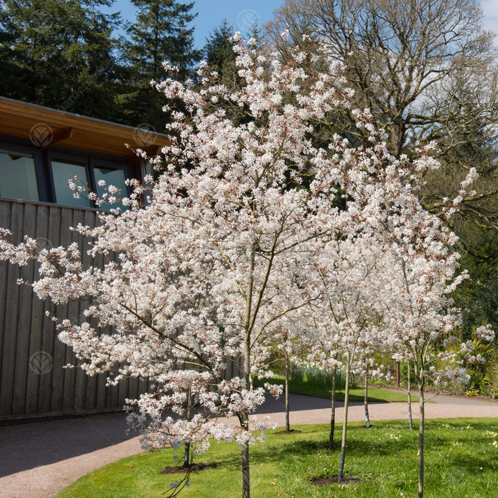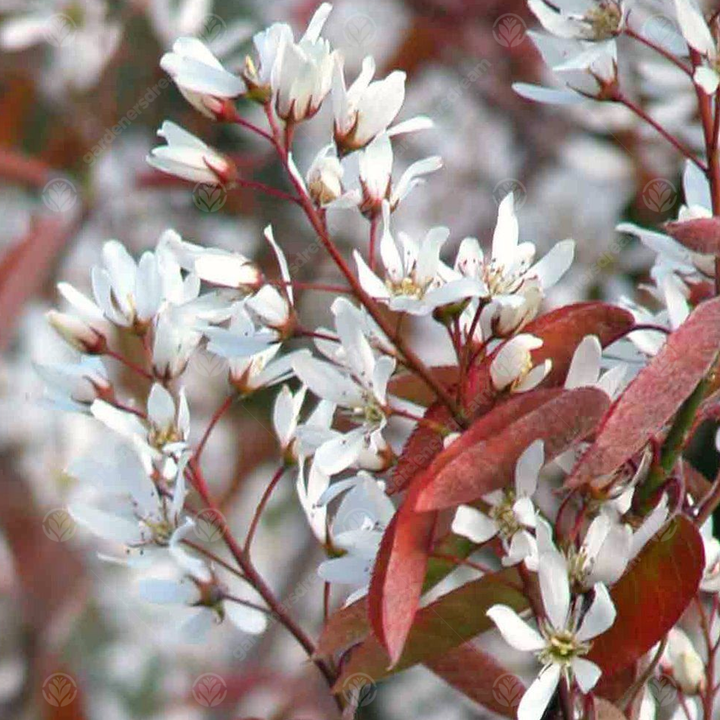The Amelanchier la paloma more commonly known as the Snowy Mespilus Tree is a small deciduous tree. This variety has red-bronze leaves and large quantities of pure white drooping flowers appear in Spring. The contrast between the flowers and the foliage makes this tree an excellent eye-catching ornamental tree.