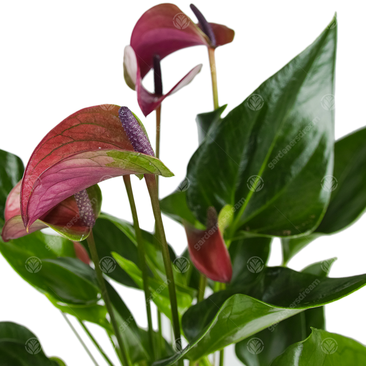 Anthuriums are widely regarded as one of the most attractive houseplant varieties available, most varieties feature big oval shaped ornamental leaves with a dark green complexion borne on long stalks. The flowering stalks of the arturium bear large flower spathes that have small clusters of flowers at their centre. These heart-shaped spathes have a waxy look to them and give off a gorgeous, vivid colour, while most are red or pink, there are other colours available. Arthuriums are quite resilient and require very little maintenance, they prefer well lit areas but keep them away from direct sunlight, they should be watered at least once-to-twice a week during summer with less frequent watering during winter
