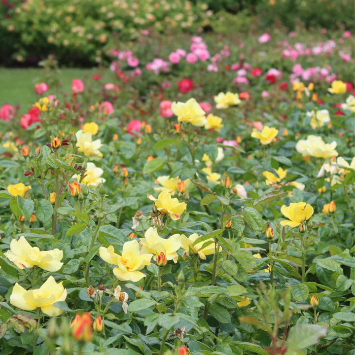 - Floribunda roses are compact bush roses with smaller flowers but more of them! They bloom continuously, providing long lasting colour