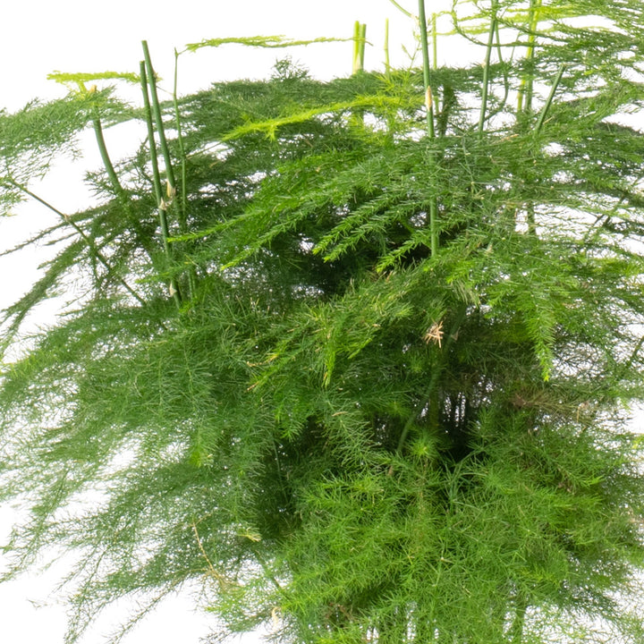 Introducing the delightful Asparagus Plumosus, a charming addition to your indoor plant collection that is sure to enhance any space with its delicate, fern-like appearance. With its feathery, bright green foliage, this elegant plant adds a touch of freshness and sophistication to your home or office.