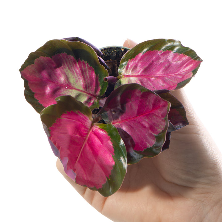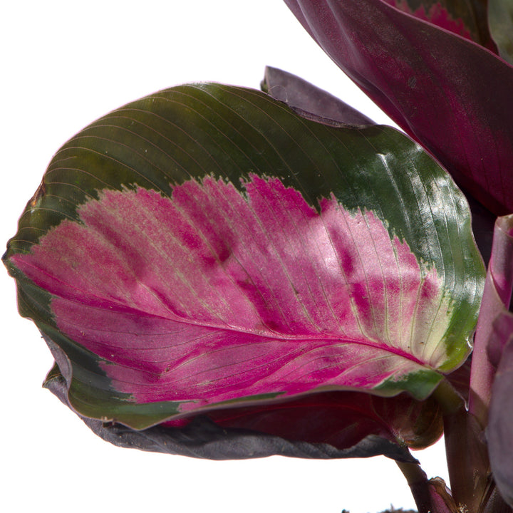 Also known as the Prayer Plant, Calathea Purple Roseopicta Rosy is native to the tropical climate of Central and South Americas. It thrives in a humid environment, making it perfect for kitchens and bathrooms. Regular misting will help your Prayer Plant thrive and keep it a happy roommate.