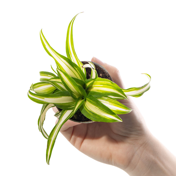 Better known as a Spider Plant, Chlorophytum Variegatum is incredibly easy to grow and care for. It frequently appears on lists of (almost) un-killable plants and is particularly well suited to new plant parents. Spider Plants look great placed on shelves or in hanging baskets, where the long leaves can elegantly flow.