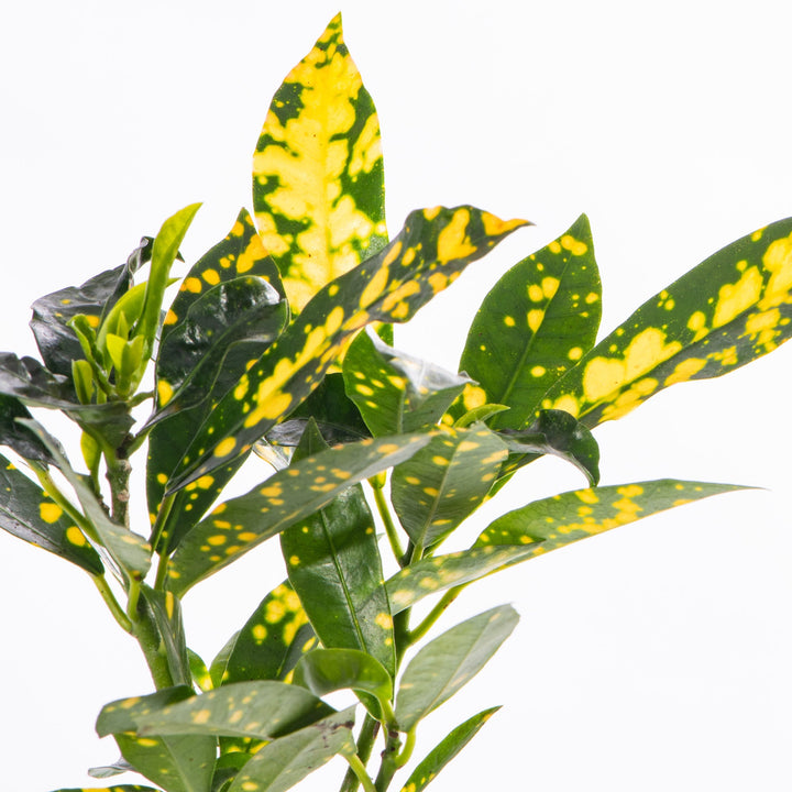 Croton plants are generally easy to care for. They thrive in a warm, bright spot and can tolerate some direct sunlight (but avoid too much as it can scorch the leaves). The brighter the spot you choose for your new plant, the more vibrant the leaf colour will be. Croton prefers lightly moist soil but doesn’t enjoy being waterlogged so let the soil drain well and let the top 2cm dry out before watering again.