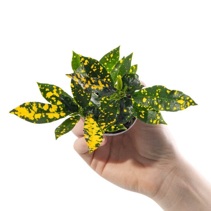 Also known as the Gold Dust Croton, this gorgeous little plant features a golden yellow mottled pattern on its large glossy green leaves. The golden flecks create a unique look that brings colour and charm to any small space.