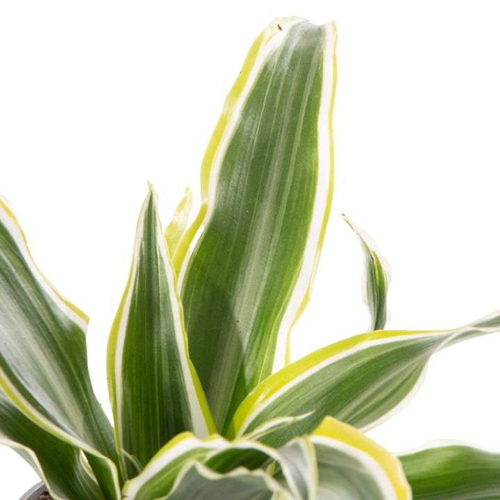 Dracaena deremensis Lemon Surprise, commonly known as the Dragon Tree, is a popular, low maintenance house plant with beautiful, broad green leaves with lime green edges and white stripes.
