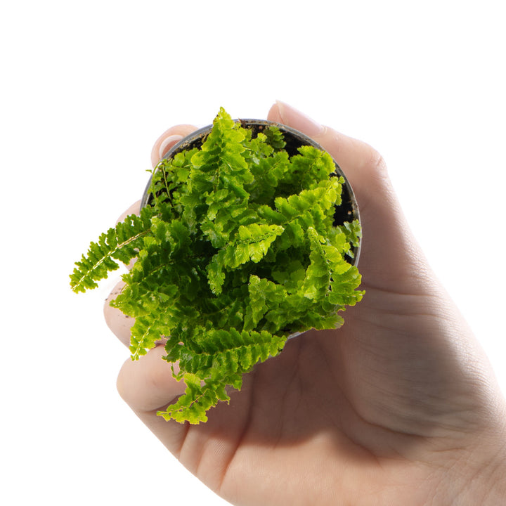 This dwarf variety is an excellent choice for a fern that is smaller in stature, and would be perfect in a terrarium. Nephrolepis ‘Fluffy Ruffle’ is a humidity lover and will appreciate regular, even moisture - their drought tolerance is minimal, so watch out. This classic house plant will not require much else aside from a fertile, moist and well-drained compost mix and placement in a spot with bright, indirect sunlight or dappled shade.