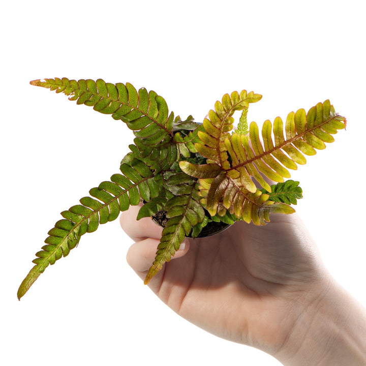 Pteris Tricolor, commonly known as the Painted Brake Fern, is a striking indoor fern. Its fronds initially show a red-pink colour, before eventually settling on green with hints of bronze. It is both unusual and attractive to place in any home or office space.