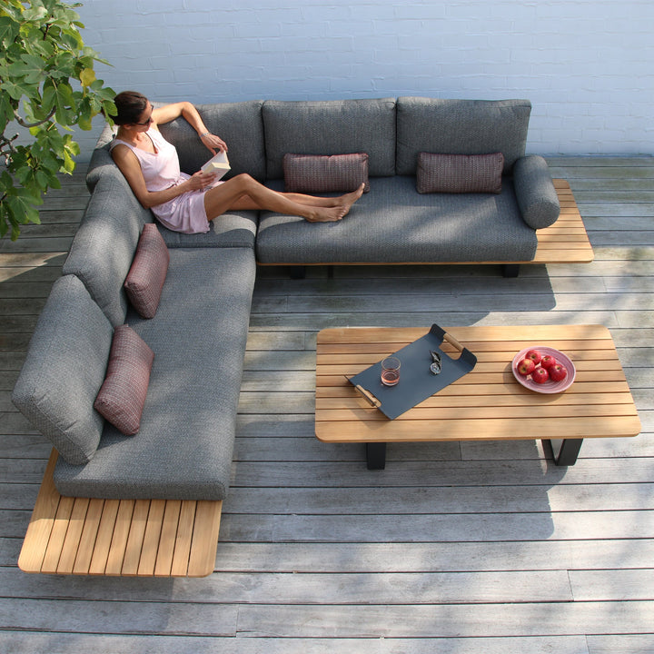 The Bay Corner Group also has low and deep seats which serve to provide users with ultimate comfort, partly due to the generously foam padded seats. The set is completed with 4 luxurious waist pillows which have removable covers made from Olefin material. With practicality at the core of this set, the Olefin material is characterised by being highly UV resistant whilst also being able to protect against cold, warm and wet weather conditions.