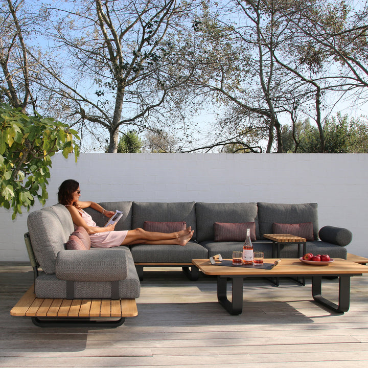 Bay Large Corner Group Set with 4 Waist Pillows and Teak Table in Olive Green