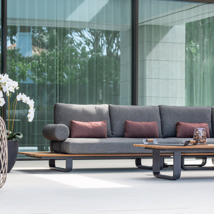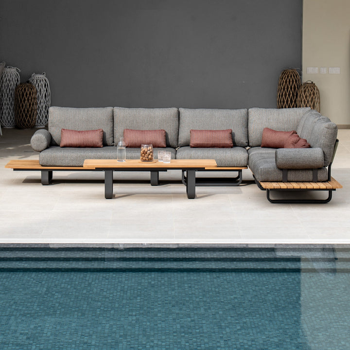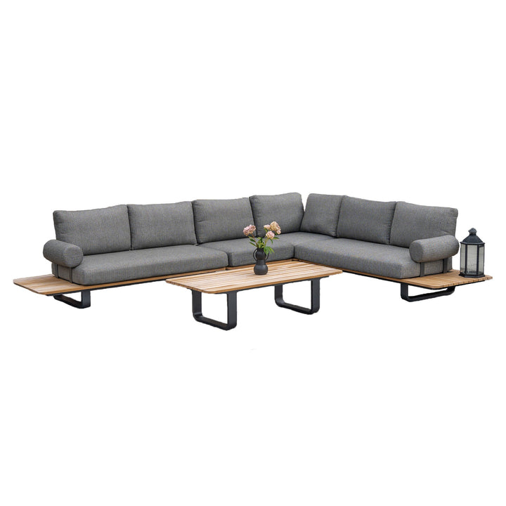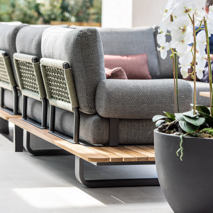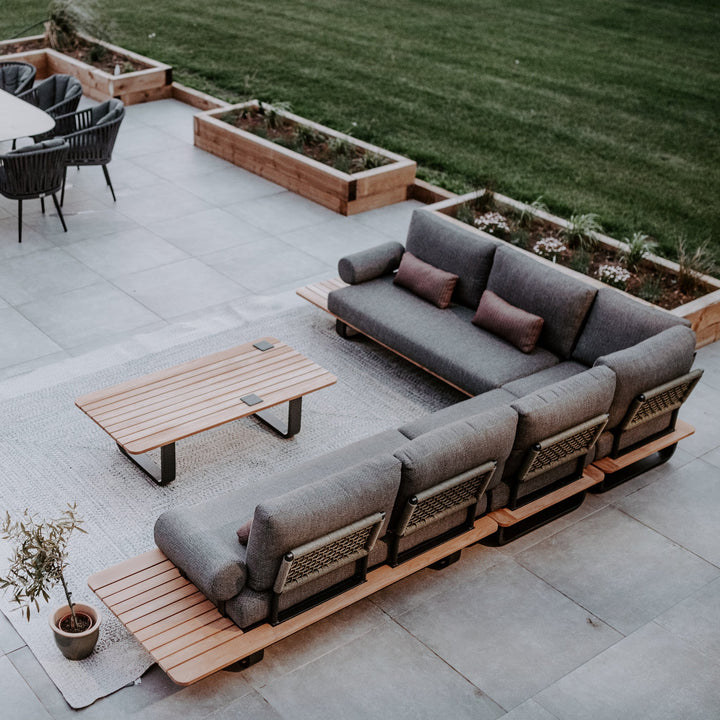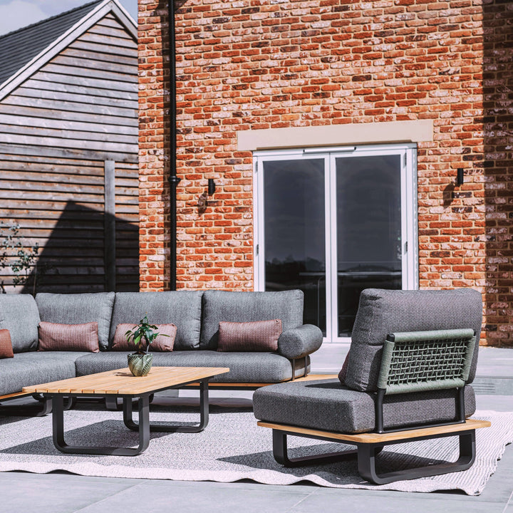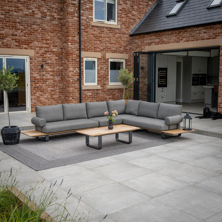 The Bay Corner Sofa Group also has low and deep seats which serve to provide users with ultimate comfort, partly due to the generously foam padded seats. The set is completed with 4 luxurious waist pillows which have removable covers made from Olefin material. With practicality at the core of this set, the Olefin material is characterised by being highly UV resistant whilst also being able to protect against cold, warm and wet weather conditions.