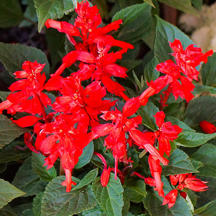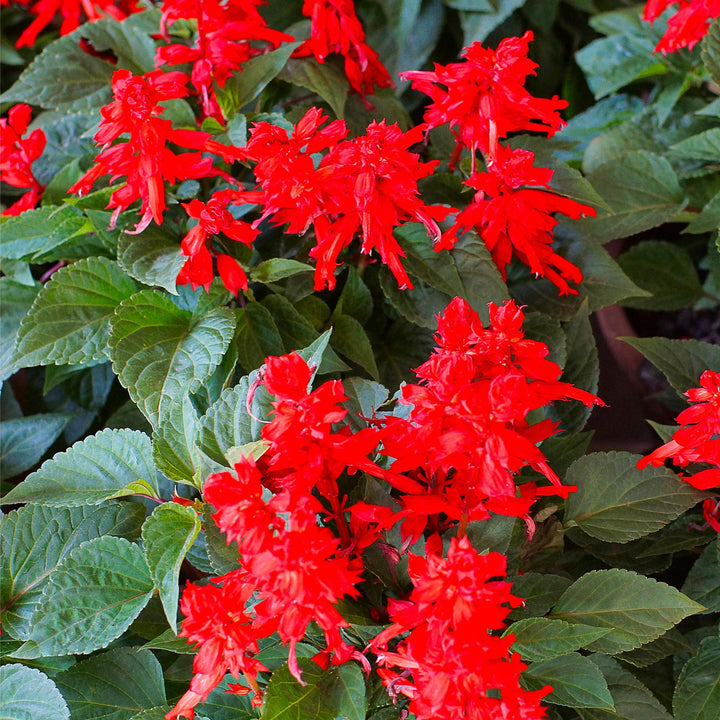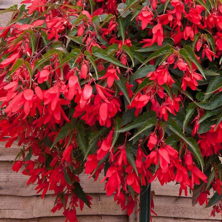 Begonia Cascade Red produces an abundance of double red flowers on trailing stems, making it ideal for hanging baskets and window boxes. The vibrant blooms provide a striking display throughout the summer months.