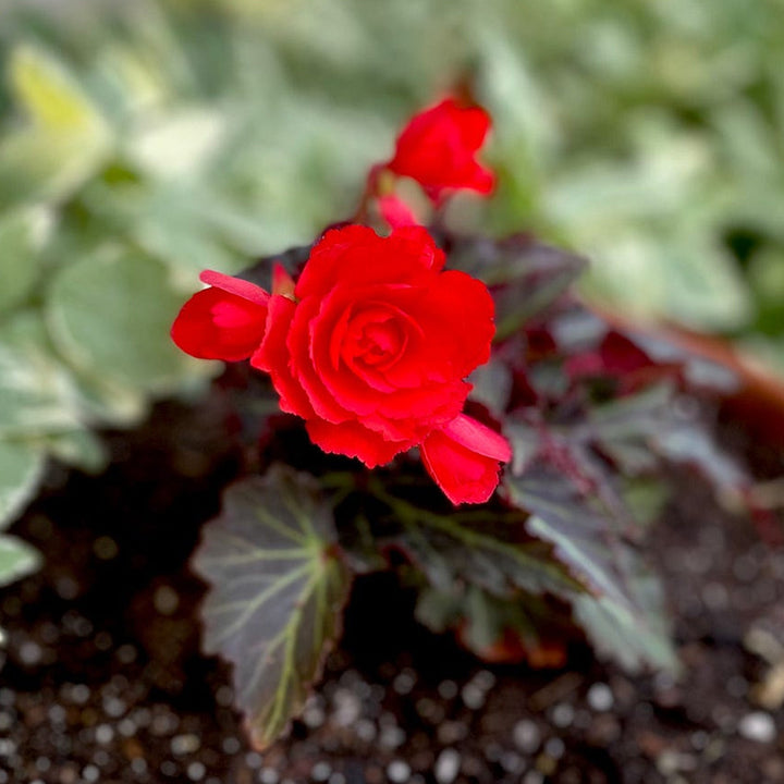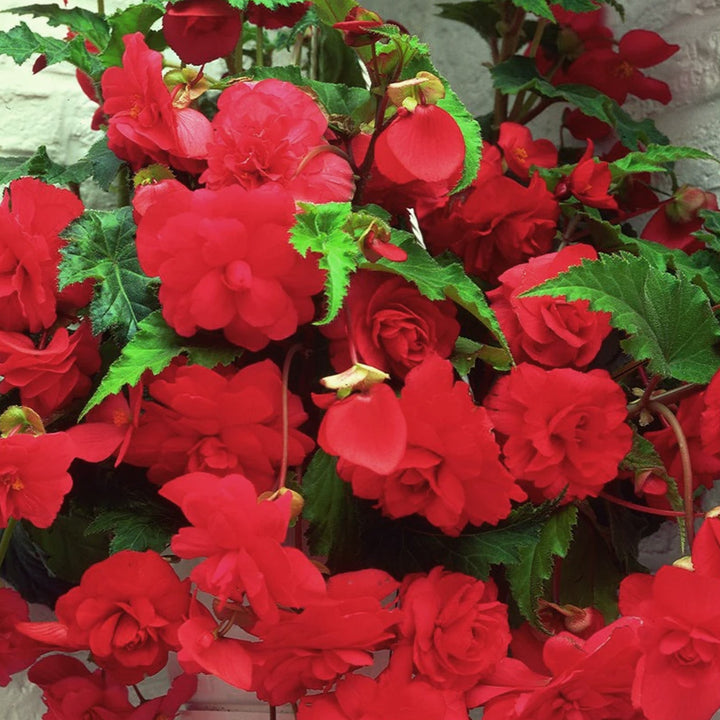 Thriving in full sun or light shade, Begonia Red Double prefers well-drained, humus-rich soil. Regular watering during dry spells and feeding with a balanced fertilizer will promote healthy growth and abundant flowering. Its compact height of 20-30 cm makes it suitable for various garden applications, including patio pots and window boxes.