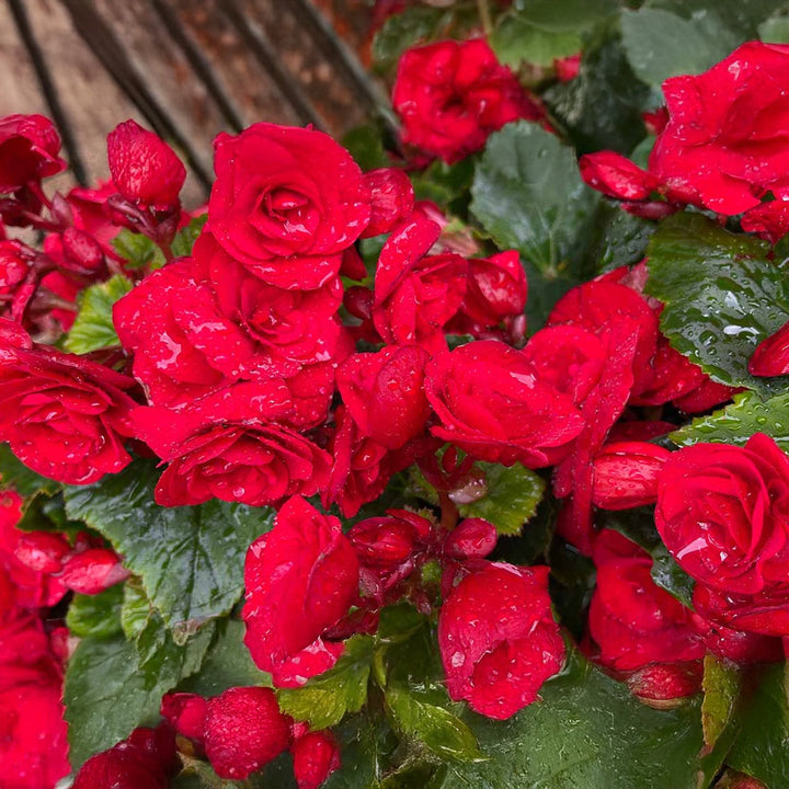 Begonia Red Double is a vibrant tuberous perennial renowned for its large, double red flowers that bloom profusely from June until late October. These eye-catching blooms create a striking display in flower beds, borders, and large containers, adding a bold splash of color to any garden setting.