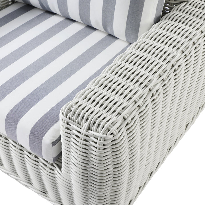 Bellagio Round Wicker Outdoor 1-Seater Sofa, White with Blue Stripes