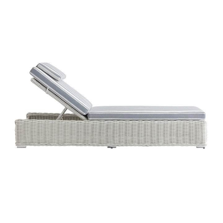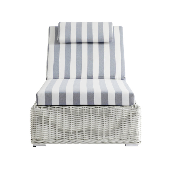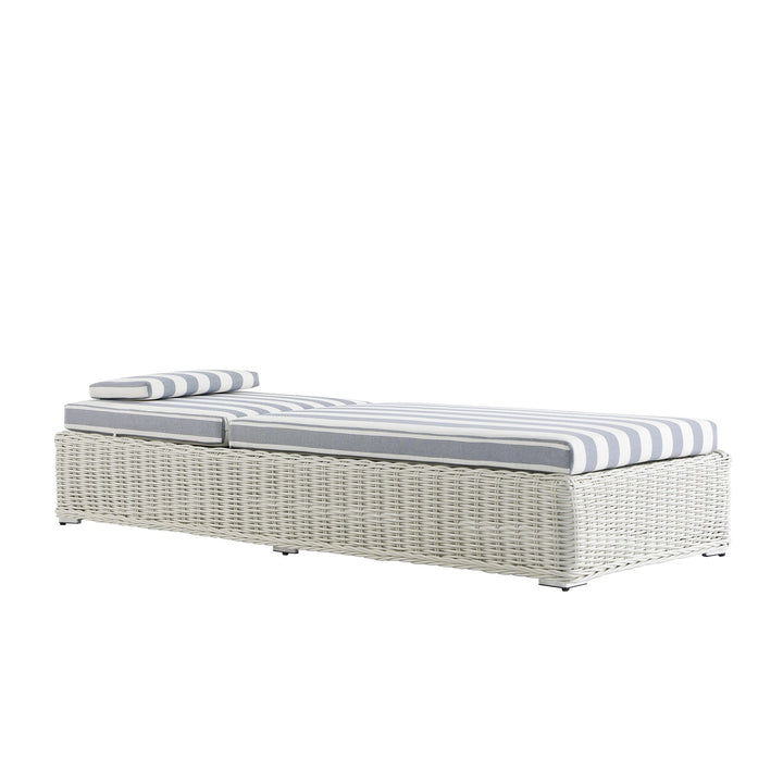 Bellagio Round Wicker Sun Lounger with Headrest, White with Blue Stripes
