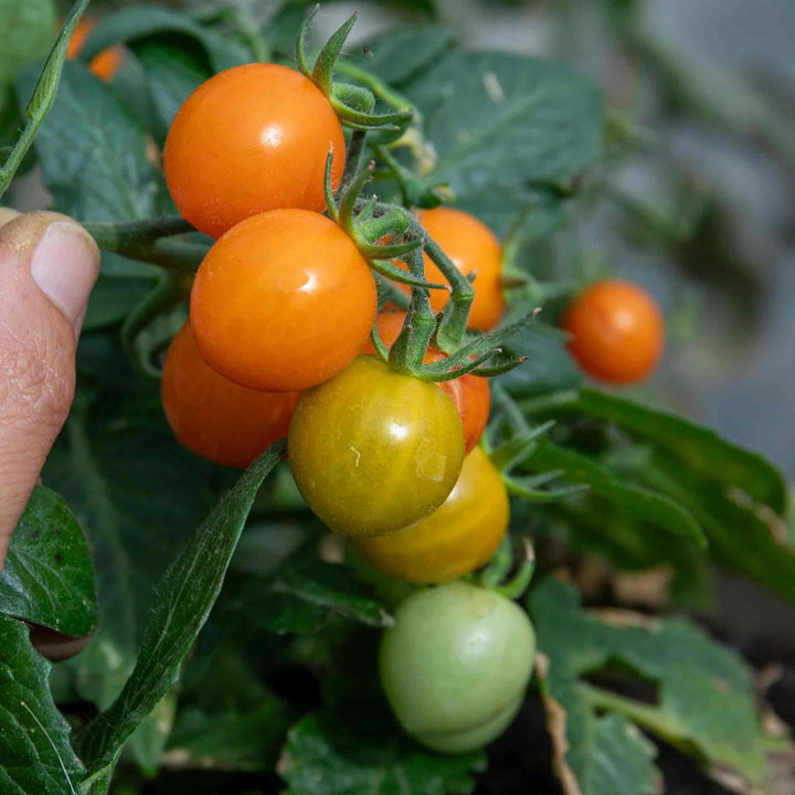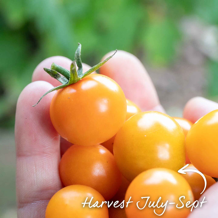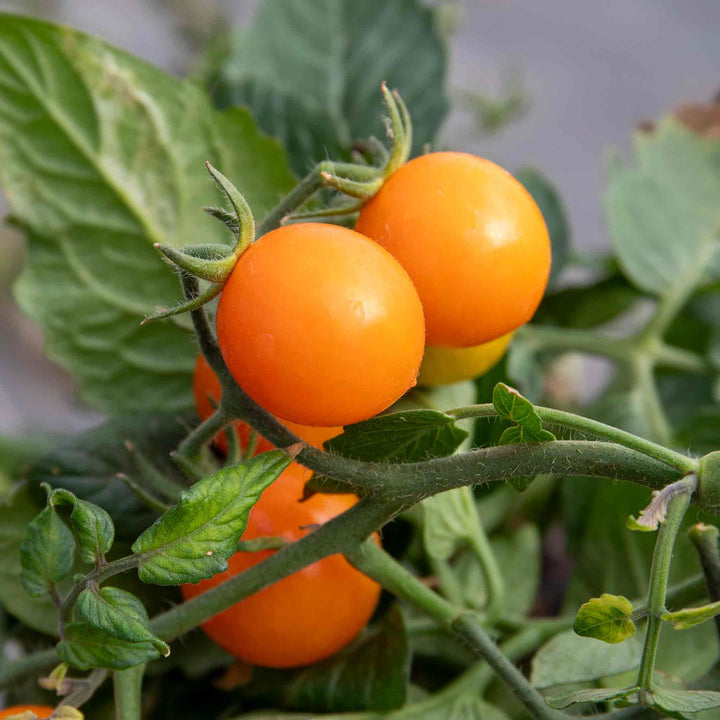 Fleuro select Gold Medal-winning Tomato ‘Tiny Temptations Orange’ is simply irresistible, producing an abundant harvest of extra-sweet orange-skinned cherry tomatoes all through summer. The bushy plants are perfect for hanging baskets and containers, smothered in fruits that good as they taste! With high resistance to both blight and mildew. Produces fruits over a long period, keep picking ripe fruit regularly to encourage further fruit production.