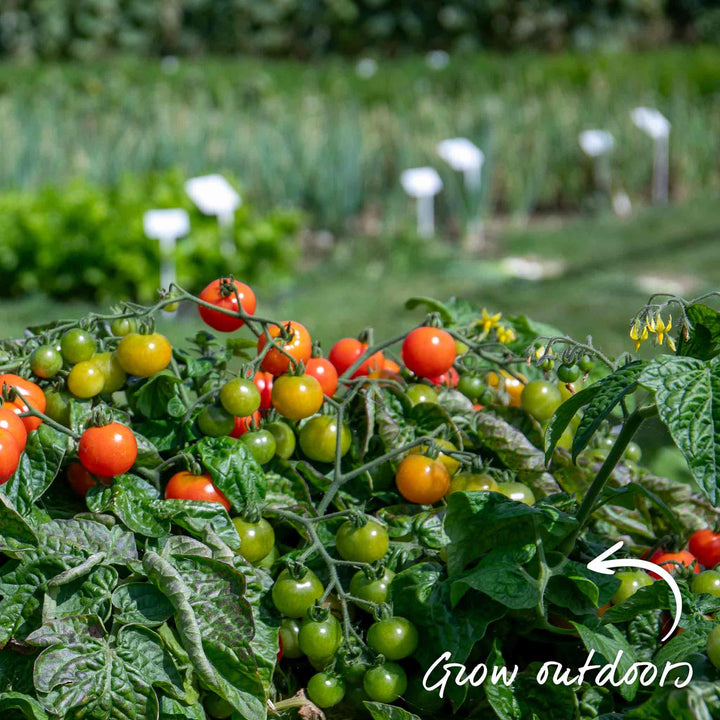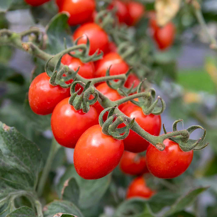 Tropical Ruby produces long trusses, crammed with masses of attractive, oval-shaped fruits with a glossy, red skin, that keep well into autumn. The fruits have high sugar content so are nice and sweet. Grows as a semi-determinate so taller than a bush variety and will need some support, especially as the fruits appear and start to develop.