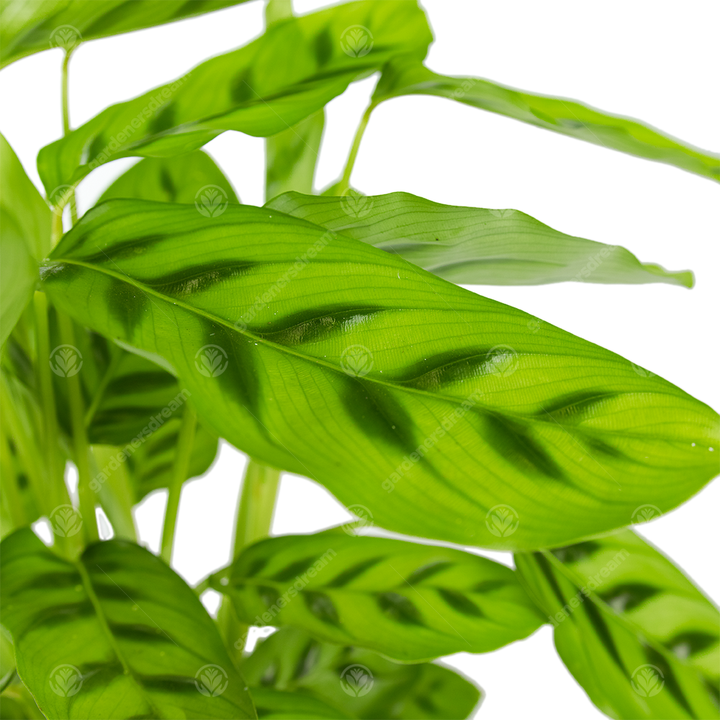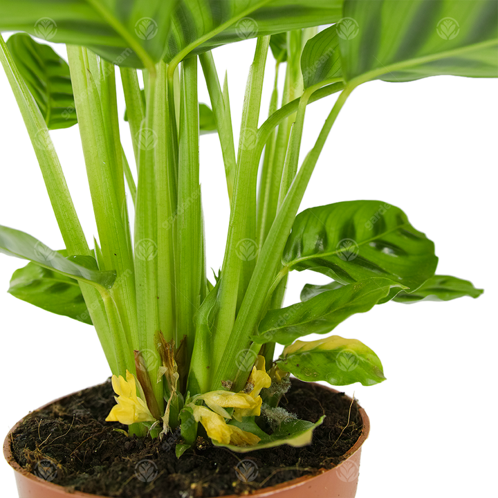 Calathea Leopardina is a popular tropical houseplant, commonly known for their foliage which consists of strong stems of upright oval leaves that are often brightly coloured with darker "animal print" variegated patterns. As these plants come from tropical origins, they prefer temperatures of 15C or above in a well lit location, but they are not very tolerant of direct sunlight as it can damage the leaves. These plants require regular watering during spring and summer but this can be cut back in winter, allow the top 2-3 inches of soil to dry out before watering. These plants thrive in humid conditions so they would be best placed in a steamy room like a bath/shower room, or this can be simulated by misting the leaves occassionally.