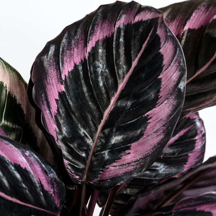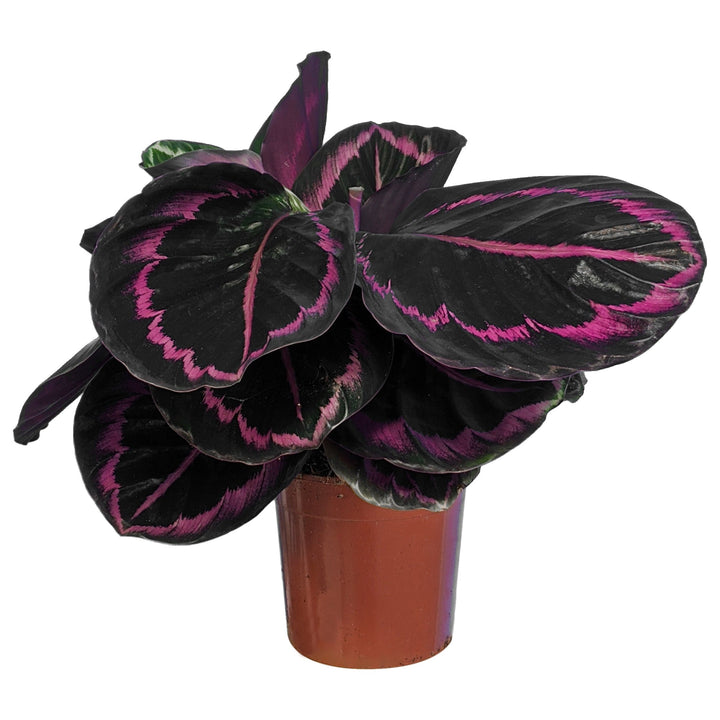 The Calathea Surprise Star possesses some very bold foliage colouring that shows itself off very well within an indoor setting, whether that be as part of an indoor plant display or on its own. The colour palette of the leaves includes both black and deep pink shades that form in a beautiful formation throughout each leaf. The Rose Painted Calathea, as its more commonly known, will appreciate being placed in any area other than in view of direct sunlight, as this will affect the leaves further down the line. Water the plant on a bi-weekly basis and mist the plant in the periods between this, ensuring you never allow the plant to sit in water for any length of time.