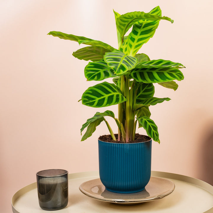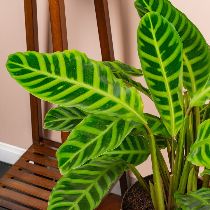 Introducing the exquisite Calathea Zebrina, a captivating addition to your indoor plant collection, certain to infuse any space with a touch of elegance. With its striking, elongated leaves featuring a mesmerising pattern of deep green stripes on a lighter green background, this graceful plant adds a sense of refinement to your home or office.