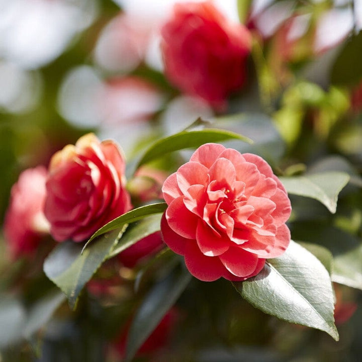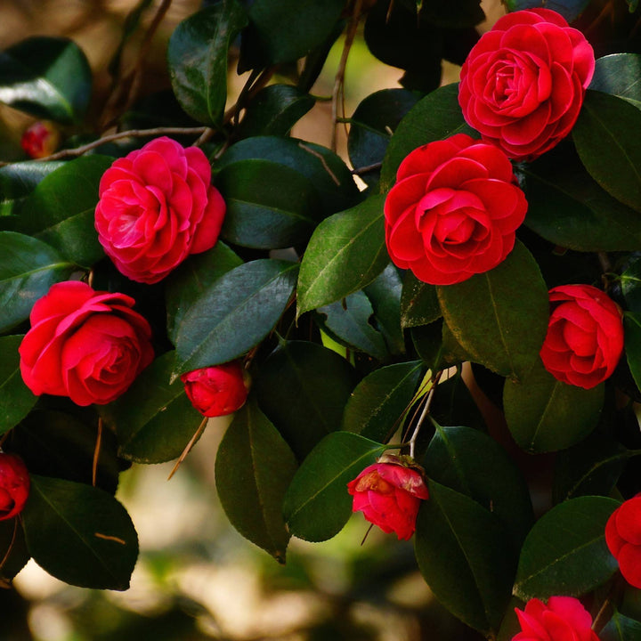 - Abundant red, rose-like flowers are the order of the day as far as Camellia japonica 'Lady Campbell' is concerned. Peppered across a glossy evergreen backdrop, the luxurious blooms emerge from January through to March, brightening even the gloomiest of grey skies.