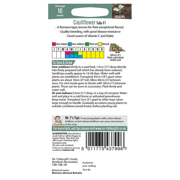 A rare white ‘Romano’ type, known for their exceptional flavour and beautiful whorled heads. As a result of careful breeding, the plants are strong and vigorous with good crop reliability whatever the weather, thanks to their improved disease resistance. Guaranteed to add an additional wow factor to your cauliflower cheese dishes. A good source of vitamin C and folate.