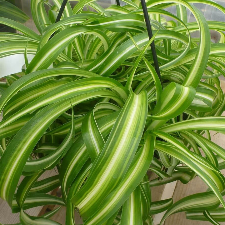 Chlorophytum 'Bonnie, commonly known as the Spider Plant are renowned for their curly green and yellow coloured leaves during their flourishing season. These plants are shade tolerant, so be sure to situate in diffused light. Chlorophytum plants are moderately trailing/hanging plants and are a lovely addition to any houseplant collection. Experiment over a couple days in your home to find the perfect spot to leave them.