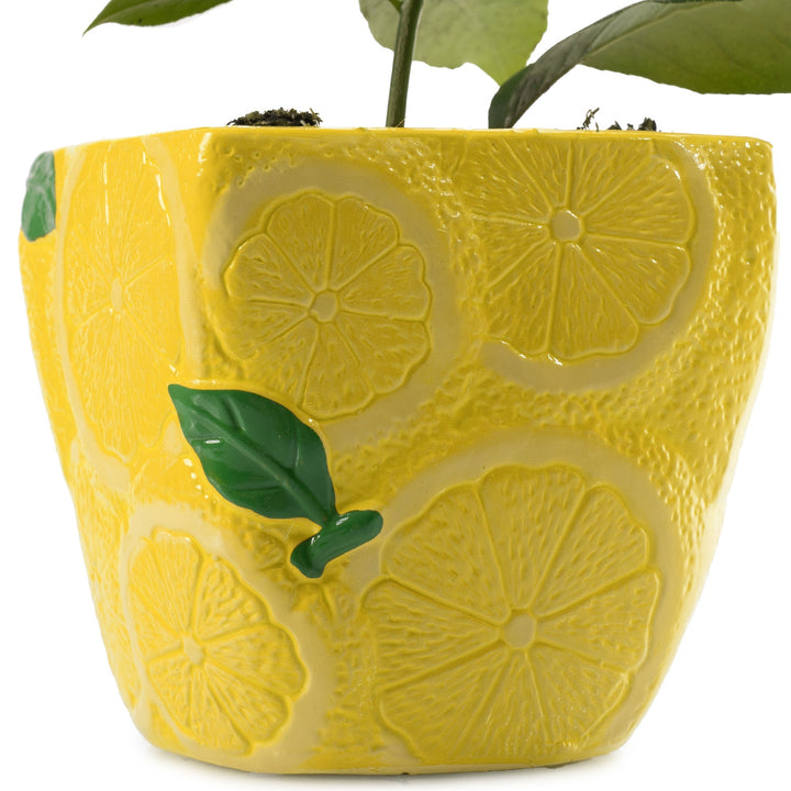 An excellent choice for an ornamental house plant, the lovely Lemon Tree flaunts shiny green leaves, aromatic white flowers and distinctive, edible yellow fruit.