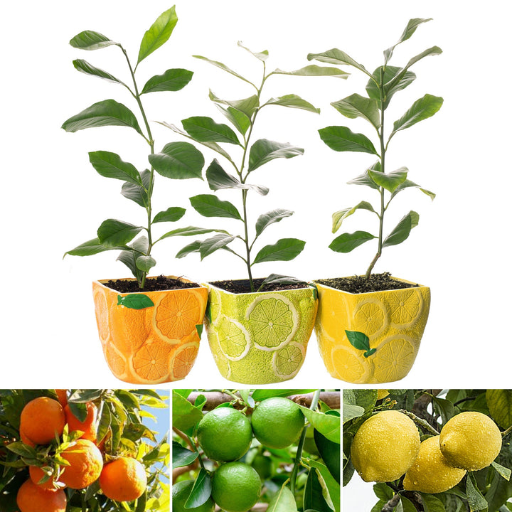Our Citrus Trio is an excellent choice if you’re looking for a new selection of plants for your home or office. These beautiful plants will add a touch of brightness all year long with their glossy green foliage, and will boast soft, white flowers from spring until summer. Flowers will be followed by juicy, colourful citrus fruits throughout the summer months.