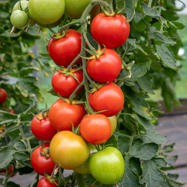 Sweet tomatoes in big numbers; every truss is well furnished and the variety is well-known to be prolific and high-yielding. This variety has been listed since our first catalogue in 1949 and a real favourite of British growers since. Probably now less popular given the wealth of new hybrid varieties available but still a great choice for reliability.