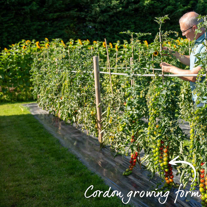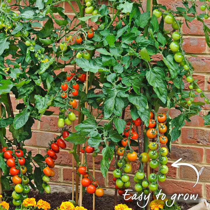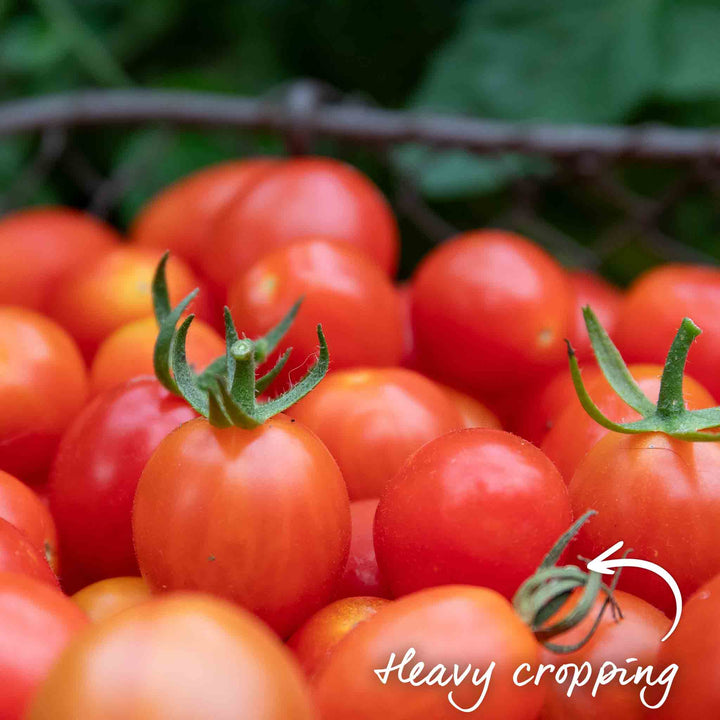 A variety that grow long trusses giving you lots of tomatoes on each one, with up to 6 trusses per plant, this is a very rewarding variety. Fruits will ripen along the truss from the those nearest the stem outwards, meaning a long period of harvest and not one where all the fruits come at once. Sweet and delicious small cherry sized fruits.