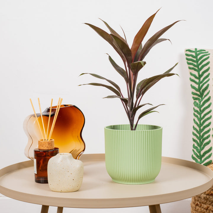Cordyline Tango is a very popular indoor plant amongst all levels of plant lovers. Its deep purple and pink foliage is a feature that stands out and, with the upright nature in which the foliage stands, it isn't hard to appreciate this plant from all angles within an indoor setting. Each leaf pulls out from the upright stem of the plant and shows off their glosiness and classy finish with ease, which only adds to the attractive display the plant can offer all year round. It will purify the air within the area it lives in by removing harmful pollutants and unwanted toxins from the air, whilst it should be situated in an area with plenty of partial shade. Watering the plant should be done twice a month, with the plant not requiring a lot of maintenance at any point in the year.