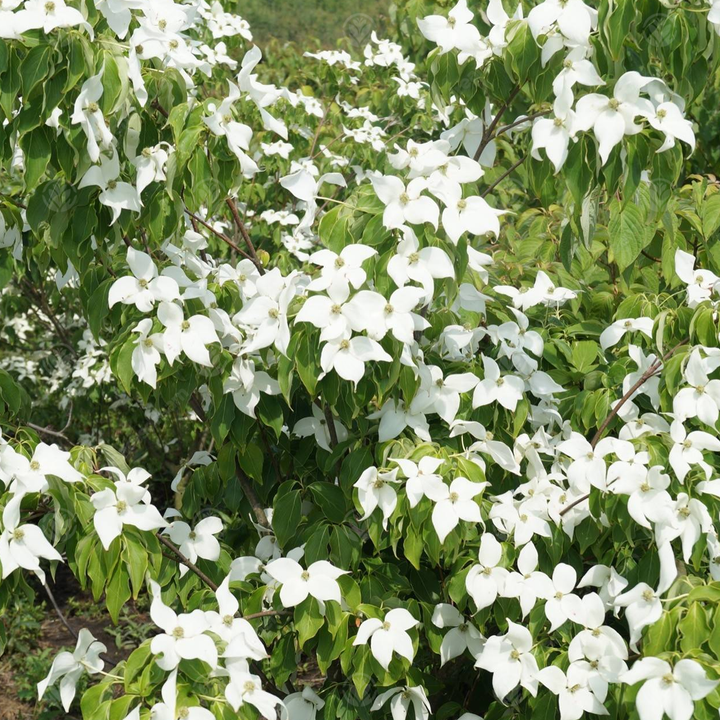 Cornus kousa ‘White Fountain’ or White Flowering Dogwood is a smaller tree with lovely, interesting foliage that changes with the seasons along with cascading clusters of flowers all over it from the late Spring onwards. The foliage is mid-green in Spring and ages to a rich and vibrant red-pink hue as Autumn approaches. The flowers appear as clusters on tiny buds surrounded by large, broad bracts of cream-white, blanketing the foliage heavily.