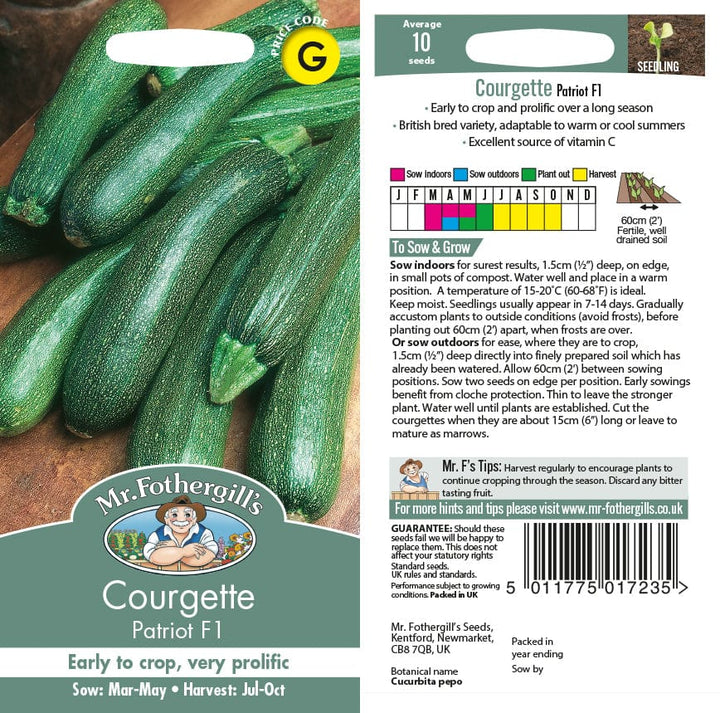 Early to crop and prolific over a long season. This British-bred variety is more adaptable to warm or cool summers. Courgettes are hugely versatile and easy to grow. They need regular watering and picking for good crops. Some courgettes can be grown successfully in pots on the patio.