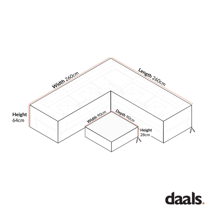 - L-Shaped Cover Dimensions: W 260 x D 260 x H 64 cm