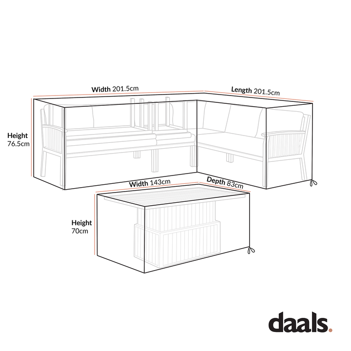 - L-shape cover size: W 201.1 x D 201.5 x H 76.5 cm
