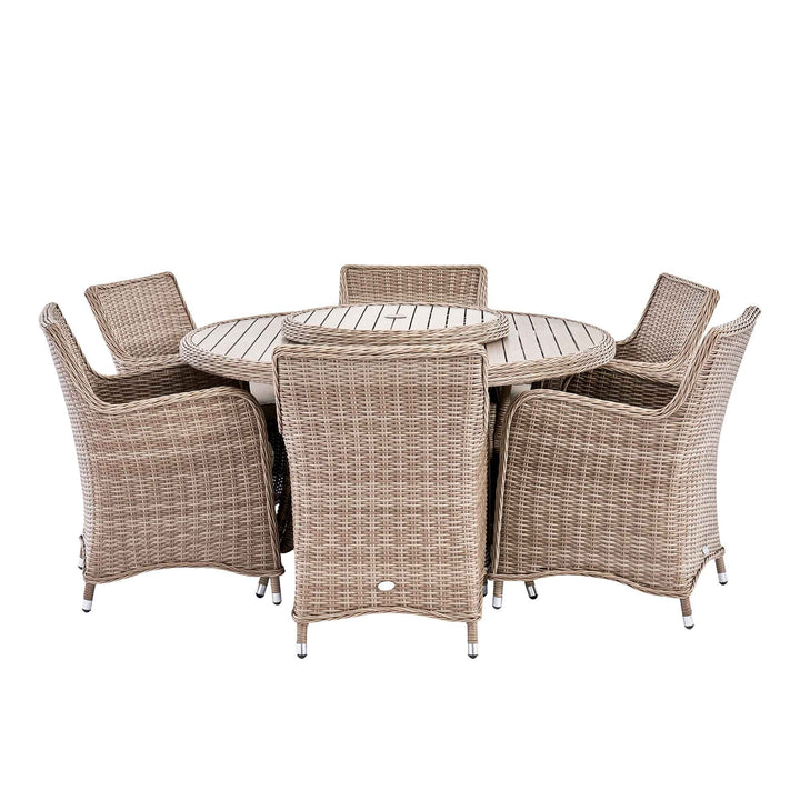 - Hampshire 6-Seater Round Wicker Rattan Dining Set with Lazy Susan & Ice Bucket, Natural