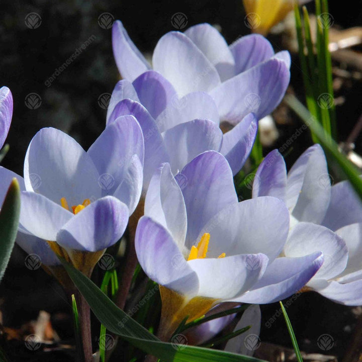 Fragrant early spring blooms, dwarf Blue Pearl is a botanical Crocus that helps announce the end of winter and the beginning of spring. Plant together for groups of elegant blooms in beds, borders, edging, rockeries or use in pots and containers for accenting walkways patio areas or window sills. Ideal for naturalising lawns, under shrubs and trees.