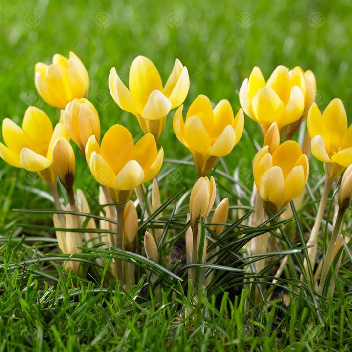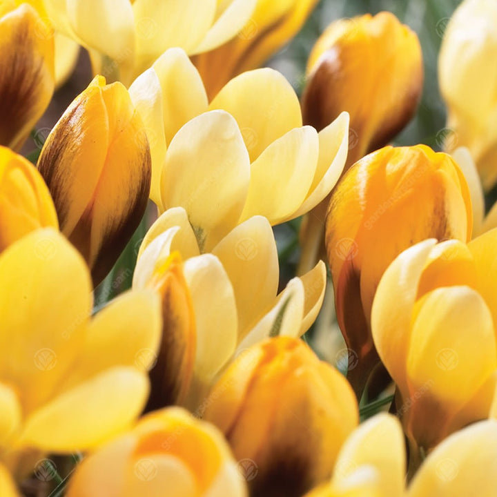 Early spring blooms, dwarf Romance is a botanical Crocus that brightens up the garden and proclaims the end of winter and the arrival of spring. Plant together for blankets of zesty lemon blooms in beds, borders, edging, rockeries or use in pots and containers for accenting walkways patio areas or window sills. Great for naturalising lawns, under shrubs and trees.