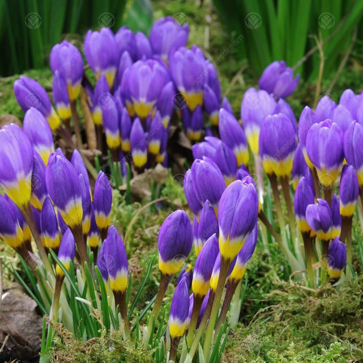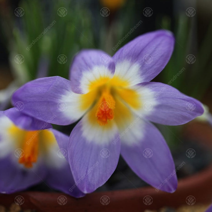 Early spring bloom, dwarf Sieberi Tricolor is a botanical Crocus that is very eye-catching and helps bring the message that spring is coming. Plant together for groups of tri-coloured blooms of purples, whites and yellows in beds, borders, edging, rockeries or use in pots and containers for accenting walkways patio areas or window sills. Great for naturalising lawns, under shrubs and trees.