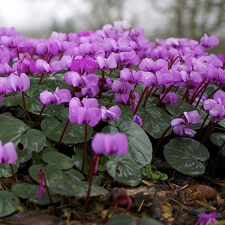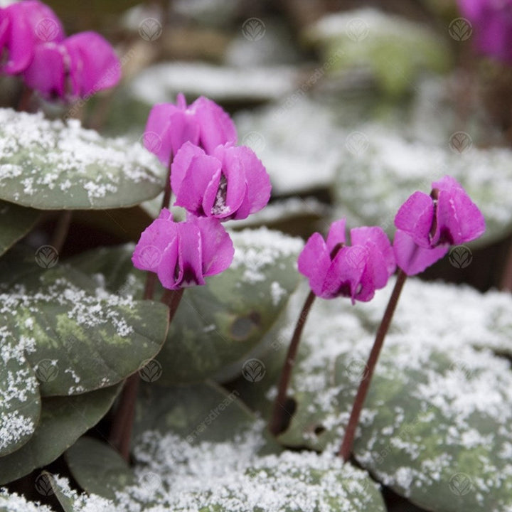 Cyclamen require careful watering so that soils remain moist, avoiding overwatering or drying out. After the blooming season, the leaves will start to wither and fade, remove flowerheads by cutting near the base of the stem and stop watering, allowing the leaves to completely fade. Remove the foliage and store indoor plants in cool areas. Outdoor plants with naturalise an area over time.