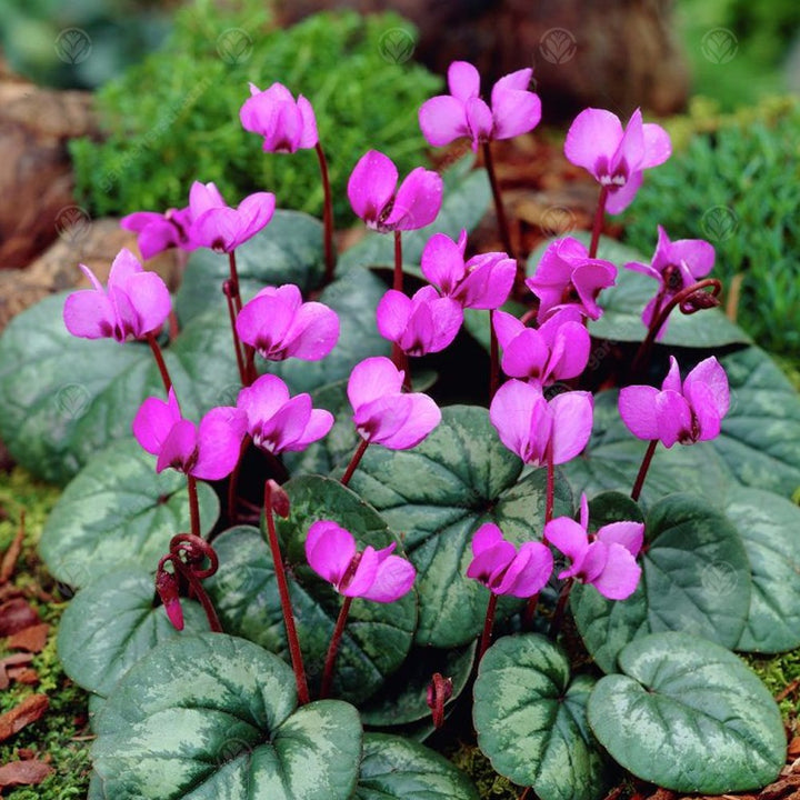Unique foliage accompanies the beautiful flowerheads of the Cyclamen species. Grown from what is often mistaken as a comb or bulb, the plants are grown from tubers, similar to a potato. Some varieties are very susceptible to high or low temperatures and need to be grown indoors, while other varieties have been bred and grown for outdoor use