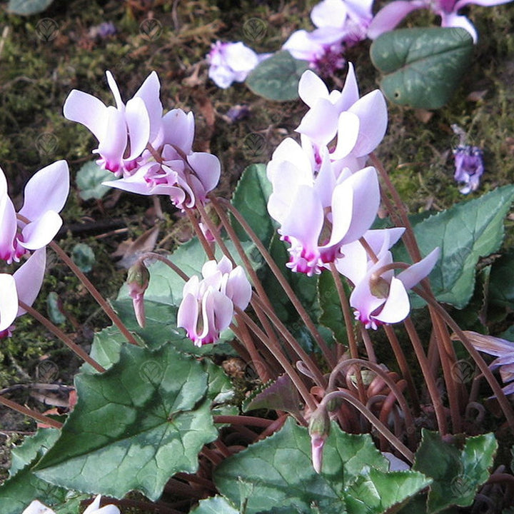 Cyclamen Hederifolium is astonishingly beautiful and elegant with flowerheads about 2-3cm in size of rosy-pinks with deeper colourations towards the base. Variegated leaves are dark-green, heart-shaped and accented with silver veins. Unique flowerheads of petals that are butterfly-shaped rise above the foliage on pale burgundy stems.