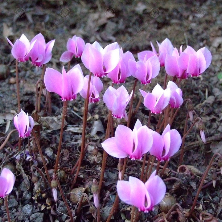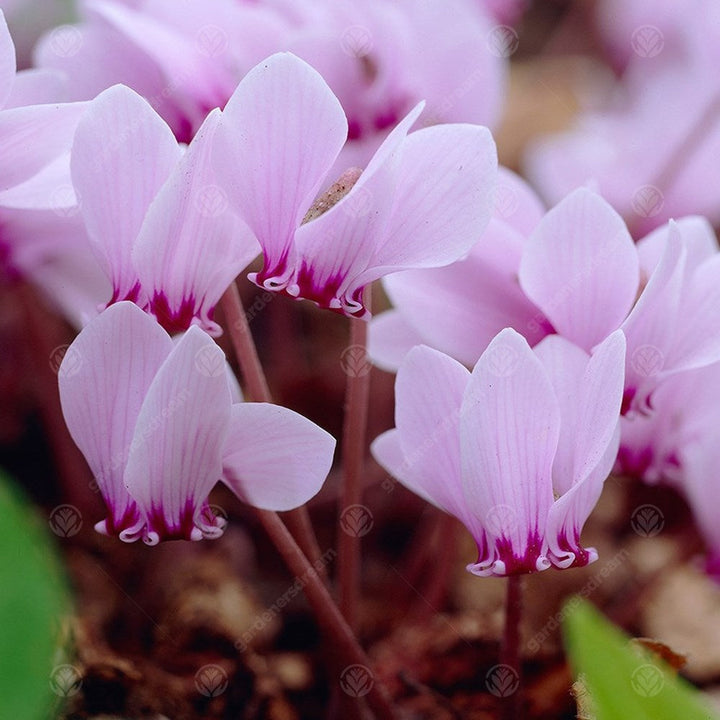 Cyclamen require careful watering so that soils remain moist, avoiding overwatering or drying out. After the blooming season, the leaves will start to wither and fade, remove flowerheads by cutting near the base of the stem and stop watering, allowing the leaves to completely fade. Remove the foliage and store indoor plants in cool areas. Outdoor plants with naturalise an area over time.