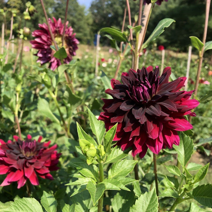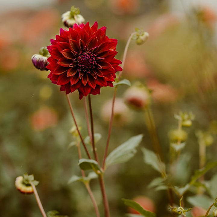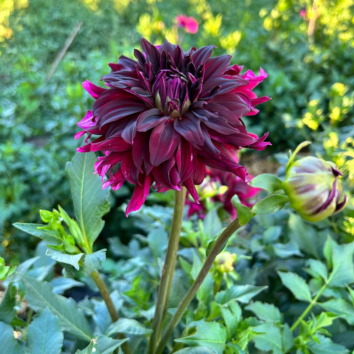 Dark and mysterious, Dahlia Rip City produces an elegant show of large, blooms that last from mid-summer right through to the first frosts. The semi-cactus flowers emerge a deep shade of chocolately red that can appear almost black in some lights, creating a striking visual effect.