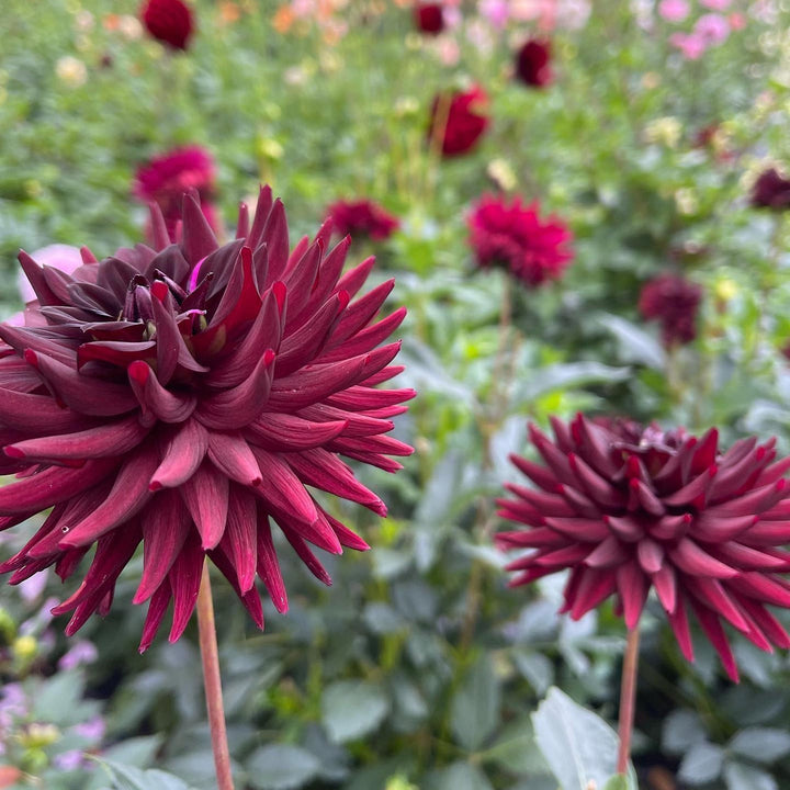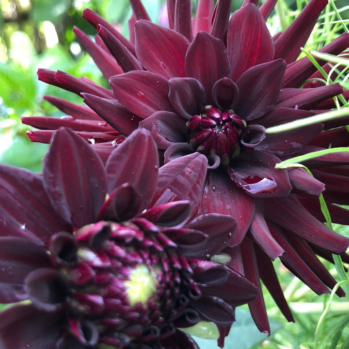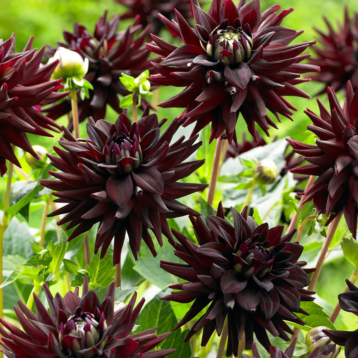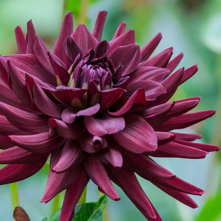 The Tamburo Dahlia is ideal for adding texture and luscious, velvety colour to the garden. The deep maroon-red flowers boast layered circles of petals and are centred with a hint of olive green for extra visual interest.