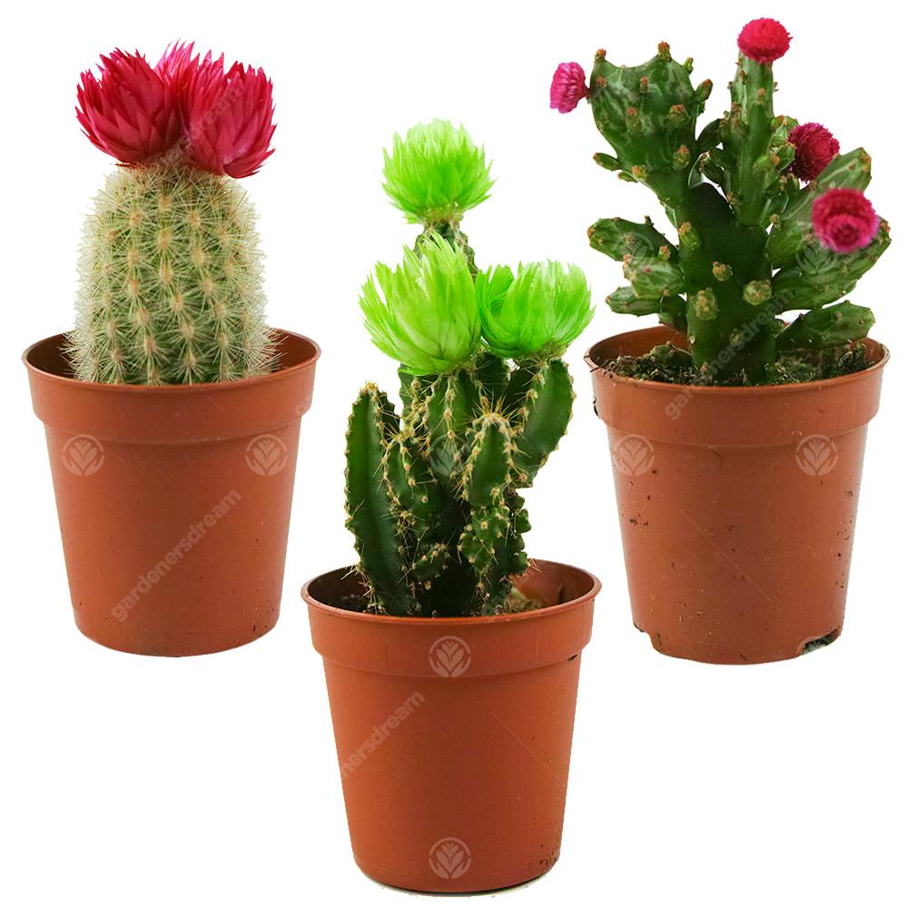 Mini Cactus are a variety of succulent plants, in varied sizes and colours, growing only a few inches high and well-suited for growing indoors in pots. These cactus plants sometimes produce brightly coloured flowers, making them decorative gift items. Combine a few unique varieties of Mini Cactus and create a wonderful houseplants collection for a friend.