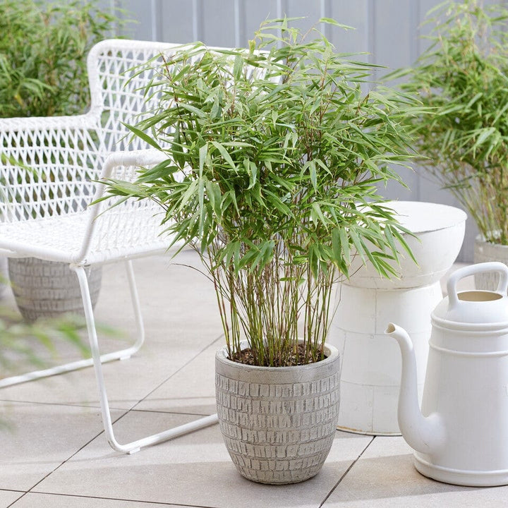 - Starting out a bold green colour, the colour of the stems fade to paler green and yellow shades as they mature. Reaching an ultimate height of just three metres or so, Fargesia rufa is perfect for smaller gardens, and its clump-forming nature makes it much easier to contain. You could even grow this bamboo in a large patio planter.
